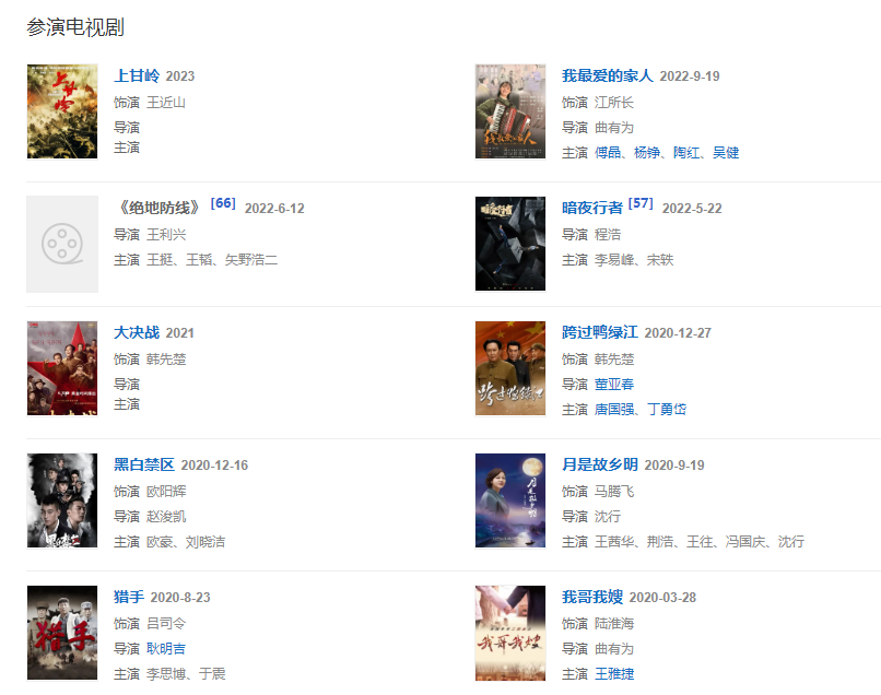 代表作品:《重案六組第三部》、《我的長征》、《戰(zhàn)士》、鐵血戰(zhàn)狼
