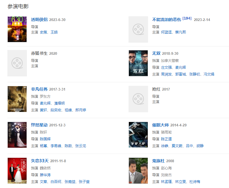 代表作品:失戀33天、浮沉、小兒難養(yǎng)、小爸爸、好先生、畢業(yè)歌、職場(chǎng)是個(gè)技術(shù)活、創(chuàng)業(yè)時(shí)代、決勝法庭