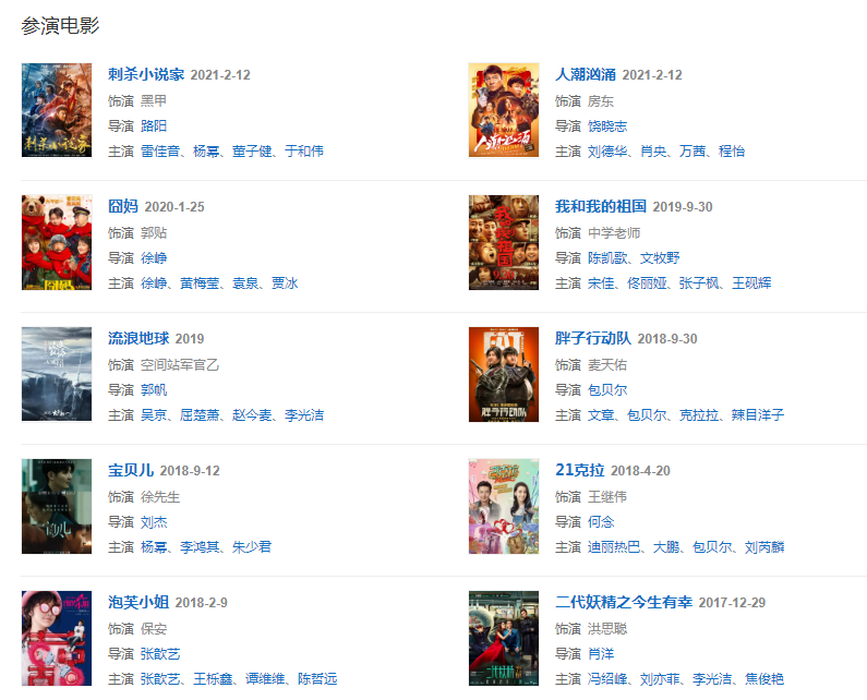 2018年主演都市情感劇《都挺好》,420日主演的喜劇電影《21克拉》上映。