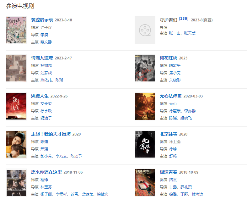 代表作品:無心法師、人生若如初相見、走起!我的天才街坊、長津湖、仙劍云之凡