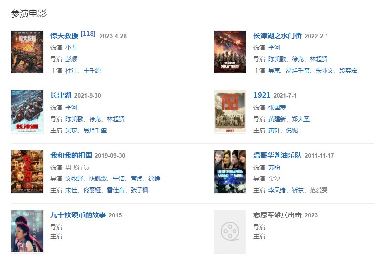 202171日,參演的電影《1921》上映;930日,主演的抗美援朝電影《長津湖》上映