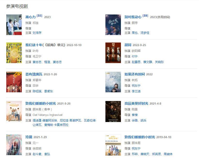 2020年,主演古裝奇幻劇《玲瓏》;同年,主演都市情感劇《昔有琉璃瓦》。