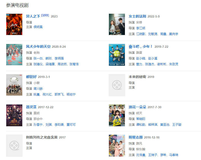 2019年,參演都市情感劇《都挺好》,并入選2019福布斯中國(guó)100名人榜  、2019福布斯中國(guó)30歲以下精英榜。