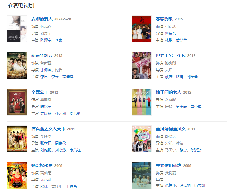 2009年,出演歷史劇《楊貴妃秘史》,與演員殷桃和黃秋生配戲  。