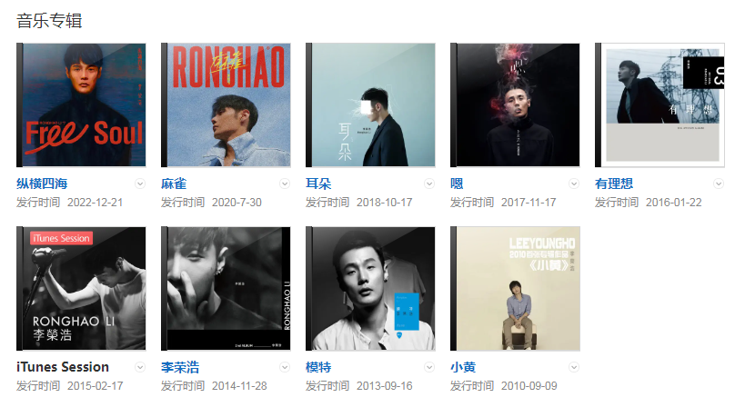 2014年,發(fā)行同名音樂(lè)專輯《李榮浩》,憑該專輯獲得中國(guó)TOP排行榜"年度內(nèi)地最佳男歌手獎(jiǎng)"。