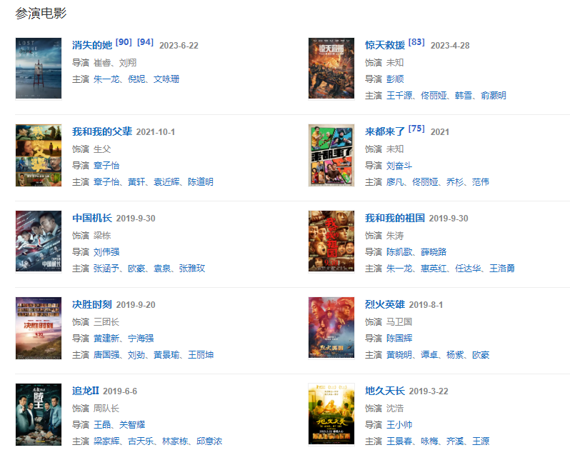 代表作品:紅海行動(dòng)、青年醫(yī)生、羅曼蒂克消亡史、高跟鞋先生、北京遇上西雅圖