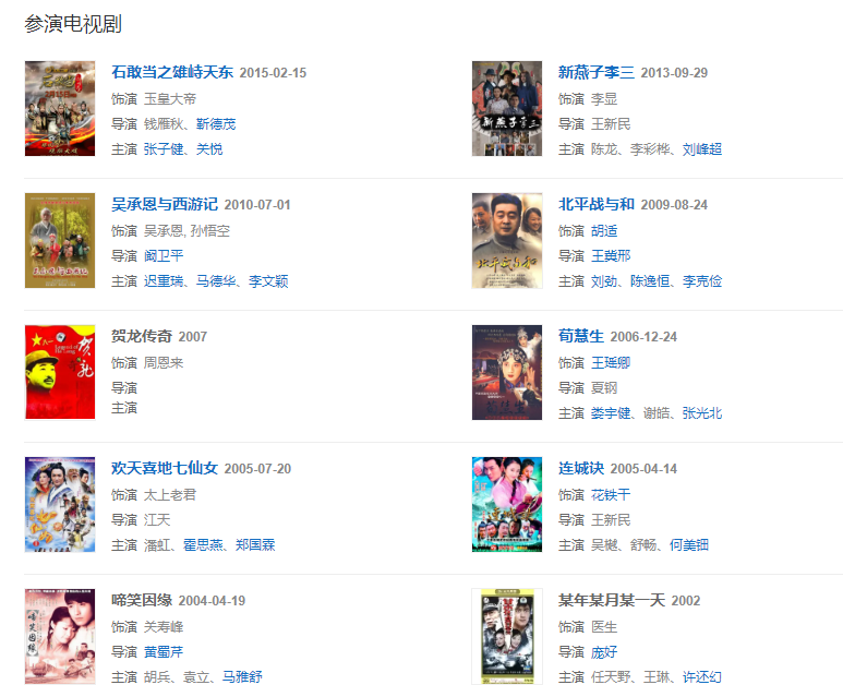 2007年6月,在古裝劇《吳承恩與西游記》中同時(shí)飾演吳承恩和孫悟空兩個(gè)角色。