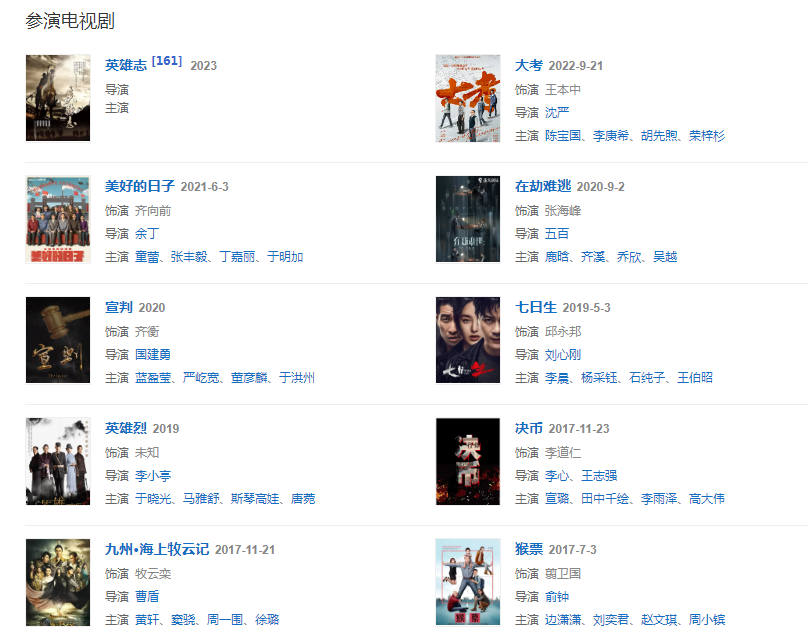 代表作品:鋼的琴、異鎮(zhèn)、湄公河大案、解救吾先生、三七撞上二十一、黎明決戰(zhàn)、繡春刀