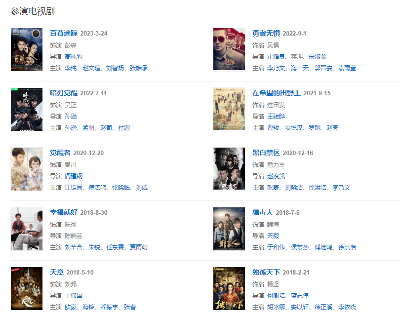 代表作品:花千骨、夏家三千金、絲絲心動、愛情自有天意、獨孤天下、致青春