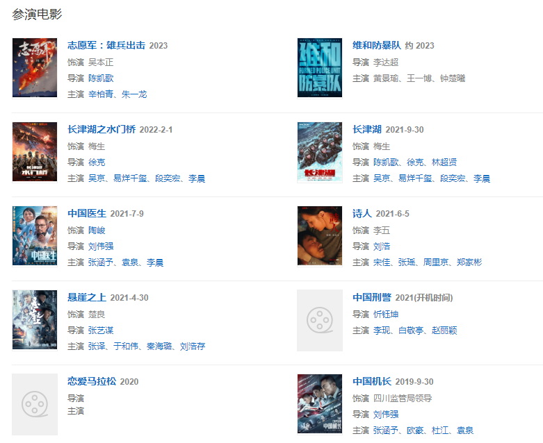 代表作品闖關(guān)東、遠去的飛鷹、我們的法蘭西歲月、建軍大業(yè)、紅高粱、陸垚知馬俐、北上廣不相信眼淚、愛在蒼茫大地、大明風(fēng)華、漂洋過海來看你、在一起主要成就2011年第14屆上海國際電影節(jié)亞洲新晉演員獎