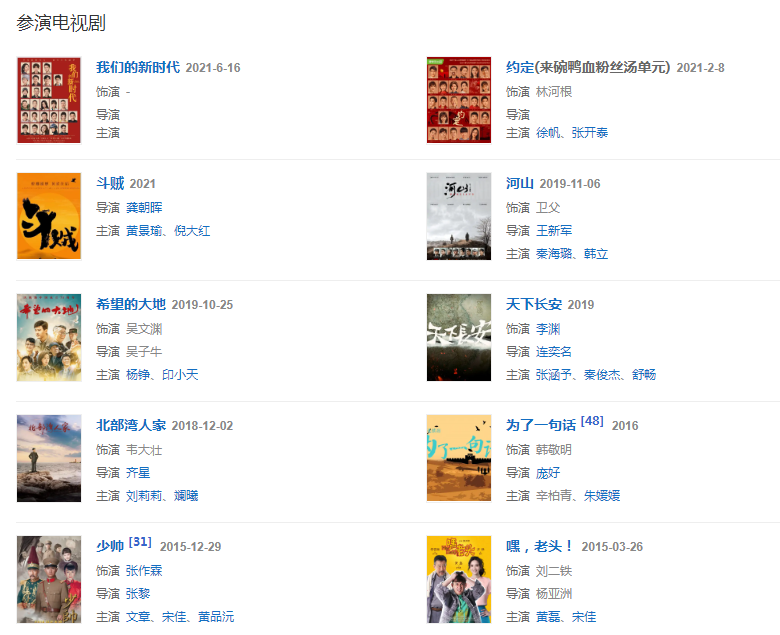 2020年,參演建黨100周年重大革命歷史題材獻(xiàn)禮劇《光榮與夢(mèng)想》。