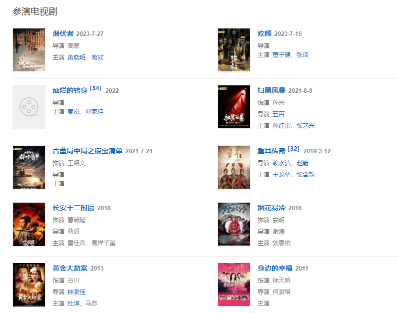 代表作品:青春期、攤開你的地圖、風(fēng)車、長安十二時辰、繡春刀Ⅱ:修羅戰(zhàn)場、日光之下
