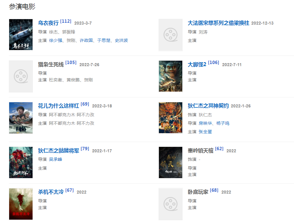 2019年,主演玄幻西游電影《真假美猴王之戰(zhàn)神歸來》;同年,主演電影《男人的使命》。