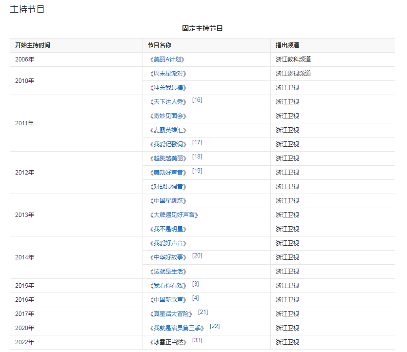 2016年,出任浙江衛(wèi)視勵(lì)志音樂評(píng)論節(jié)目《中國新歌聲》主持人。2017年,以補(bǔ)位嘉賓加盟 [12] 《花漾夢工廠》第二季。