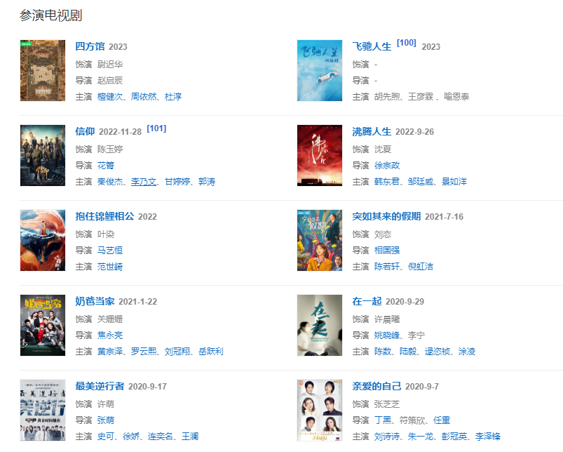 代表作品:璀璨人生、麻雀、新還珠格格、諜戰(zhàn)深海之驚蟄、寵愛(ài)、如若巴黎不快樂(lè)、花開(kāi)半夏