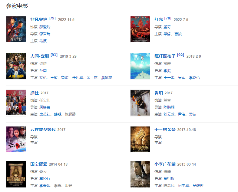 2006年3月,出演羅棋、沈志豪聯(lián)合執(zhí)導(dǎo)的驚悚片《鬼厲魂》,在片中飾演俠義果敢的江湖俠女小玉;同年,周曉文執(zhí)導(dǎo)的懸疑劇《逃亡香格里拉》,在劇中飾演云南大翡翠商知性溫婉的女兒潘竹香。