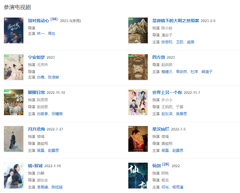 2022年7月5日,出演的古裝傳奇劇《星漢燦爛》播出;