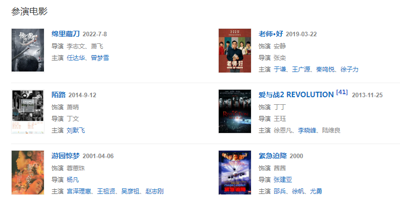1999年,參演個(gè)人首部民國劇《上海滄桑》,從而正式進(jìn)入演藝圈 。