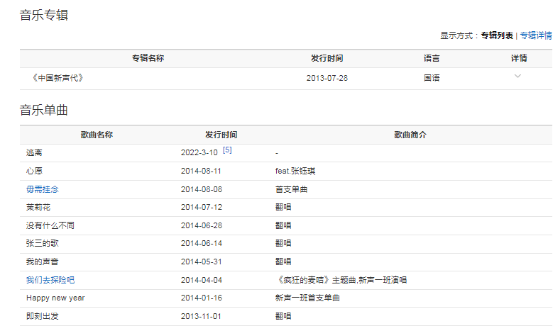 2014年5月,憑借較高人氣繼續(xù)受邀參加《中國(guó)新聲代》第二季,且成功加入茜拉組。隨后,與張鈺琪、蹇佳成、拜爾娜、曲婉婷組成新聲一班的組合,并推出組合單曲《happynewyear》。