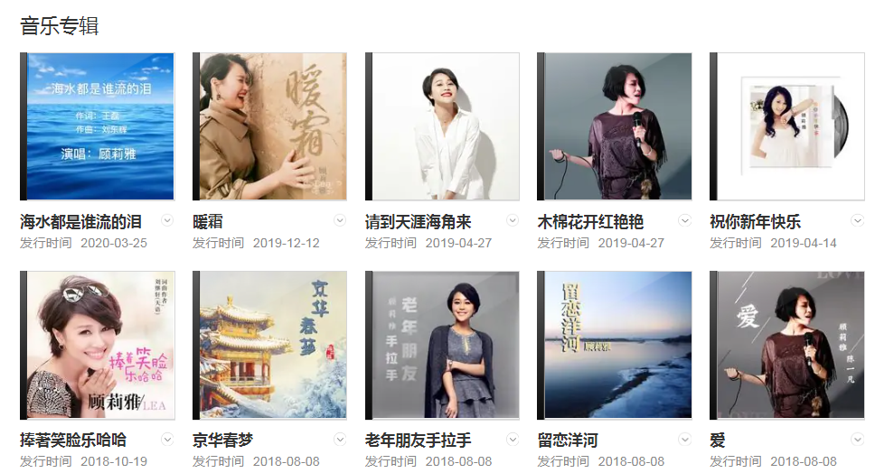 2014731日發(fā)行第六張個(gè)人唱片《顧氏情歌—綻放》。20141017日,由顧莉雅主演的《畢業(yè)那年·分手季》上映。