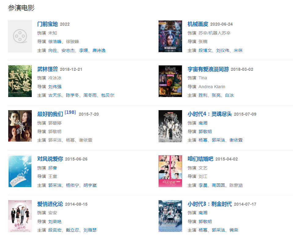 2008年,她因接拍《益達(dá)口香糖》廣告而被稱為“益達(dá)女孩”。