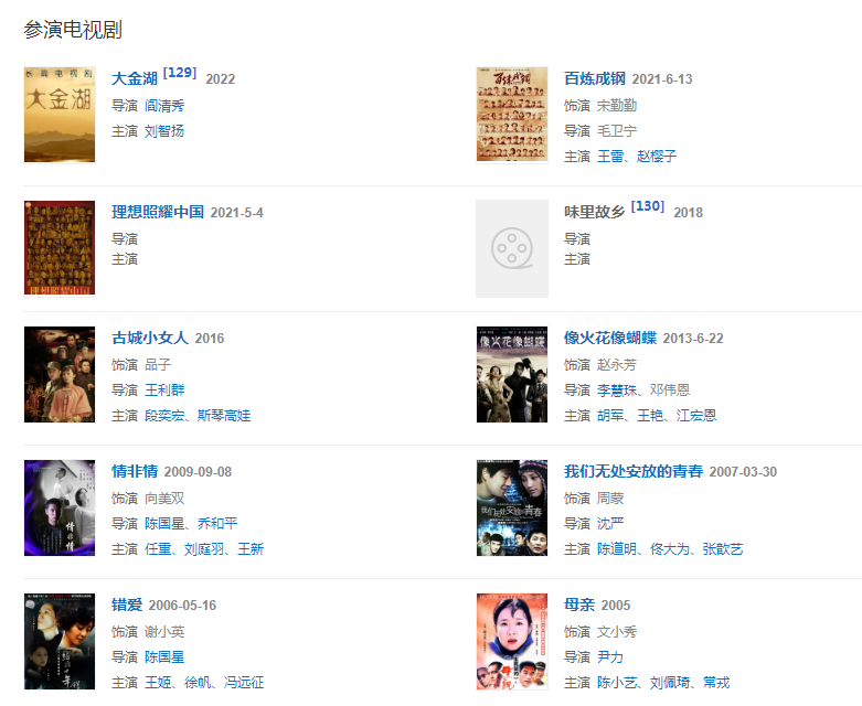 2008年,因主演愛情劇《我們無處安放的青春》而被觀眾所熟知。