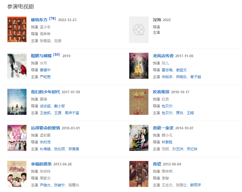 代表作品:鹿鼎記、鎖清秋、我們約會吧、致我們終將到來的愛情、激戰(zhàn)