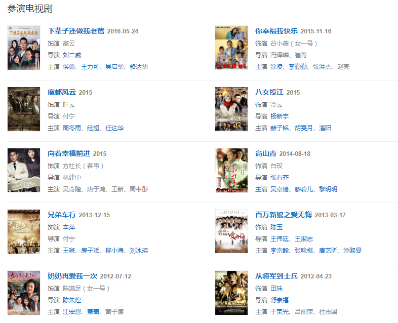 2011年主演抗日戰(zhàn)爭劇《水上游擊隊(duì)》;同年主演都市情感劇《漂亮主婦》。