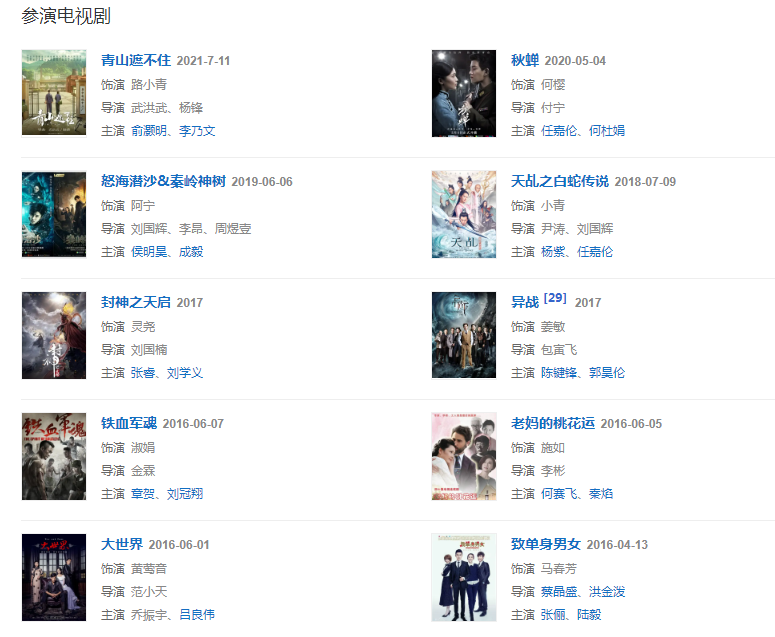 2019年,主演的懸疑探險(xiǎn)劇《怒海潛沙&秦嶺神樹(shù)》在騰訊視頻播出 。
