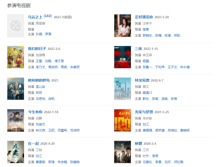 2021525日,出演的重大革命歷史題材劇《光榮與夢想》在北京衛(wèi)視、東方衛(wèi)視及騰訊視頻、愛奇藝、優(yōu)酷同步播出  。同年,與靳東共同主演都市情感劇《林深見鹿》  113日,主演的《三體》電視劇發(fā)布全球首個預(yù)告片。