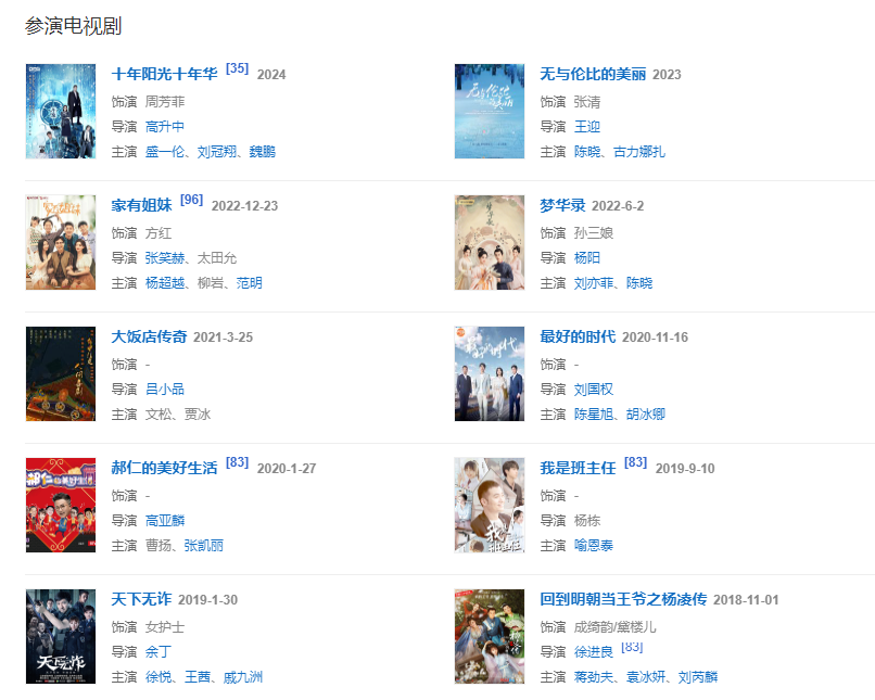 代表作品:少帥、受益人、煎餅俠、兩個女人的戰(zhàn)爭、大鬧天竺、大贏家、從你的全世界路過