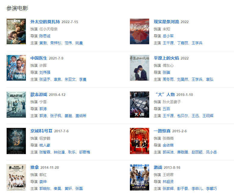 代表作品:不要和陌生人說話、父母愛情、紅色戀人、瑯琊榜之風(fēng)起長林、在遠(yuǎn)方、推拿、激情年代