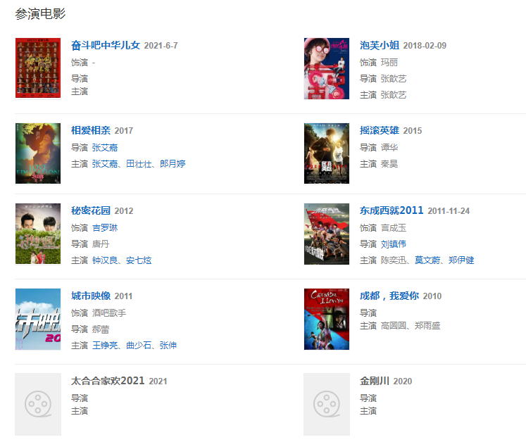 代表作品:譚某某、如果有來(lái)生、英雄贊歌、緣分一道橋、給你一點(diǎn)顏色、愛(ài)到底、影、攀登者、江湖兒女、如你所愿、昨天涯——獻(xiàn)給布宜諾斯艾利斯、3811