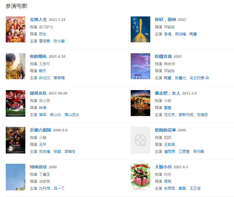 代表作品:小兵張嘎、武林外傳、十三歲女孩、山海情、射雕英雄傳