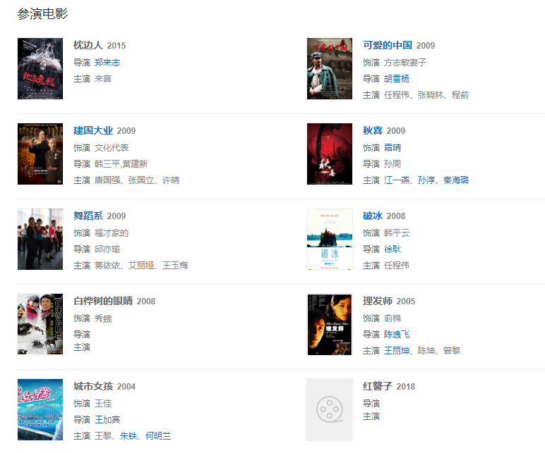 2003年出演趙本山執(zhí)導(dǎo)的電視劇《馬大帥》飾演玉芬。