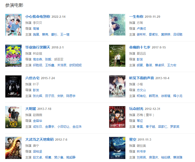 2022116日,領(lǐng)銜主演的電視劇《泳往直前》在杭州奧體中心游泳館開(kāi)機(jī);214日,主演的青春奇幻喜劇電影《小心我會(huì)電到你》上映