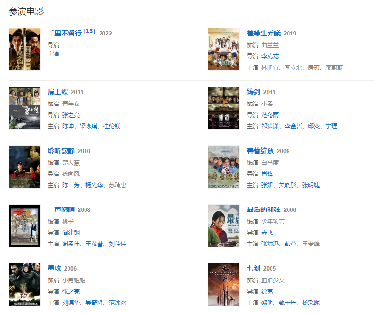 20032月,出演個(gè)人首部電視劇《萍蹤俠影》,從此正式進(jìn)入影視圈。