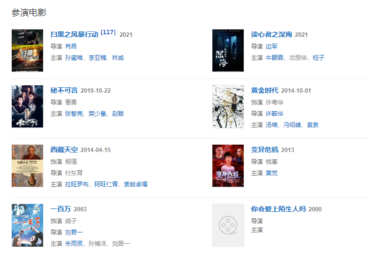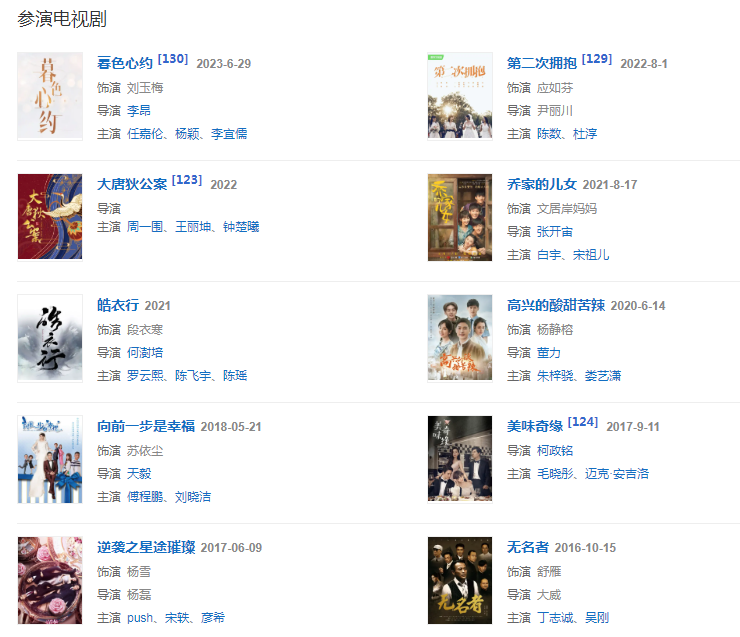 代表作品:一百萬、非你不可、蝴蝶飛飛、人間正道是滄桑、幸福里九號(hào)、小魚兒與花無缺