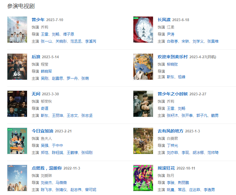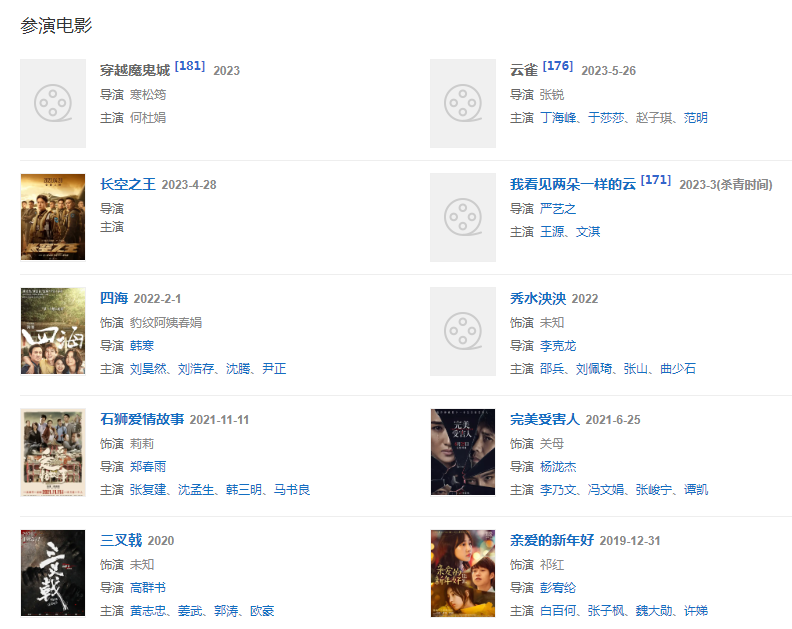 20201月,出演的警匪動作片《三叉戟》殺青  ;37日,出演網(wǎng)劇《重生》在劇中扮演馮瀟;在《如果歲月可回頭》飾演上官慧。