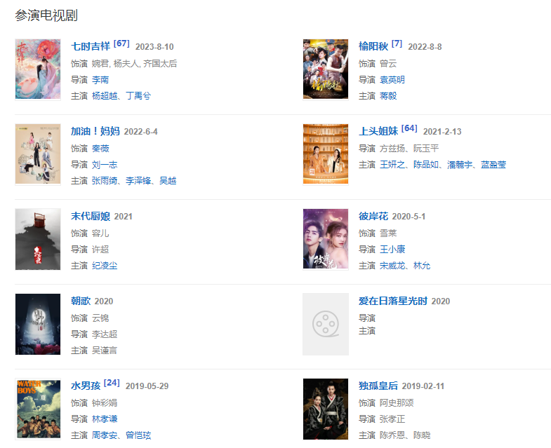 代表作品:新還珠格格、我家有喜、因?yàn)閻?ài)情有多美