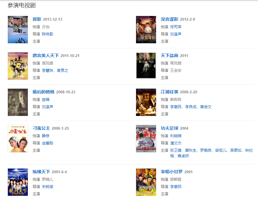 代表作品:箭俠恩仇、刁蠻公主、最后的格格、第八宗罪