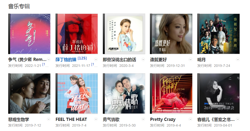 代表作品:揮著翅膀的女孩、我的驕傲、搜神記、天窗、小小、痛愛、心淡、獨照、一拍兩散、習慣失戀、越唱越強、這就是愛嗎