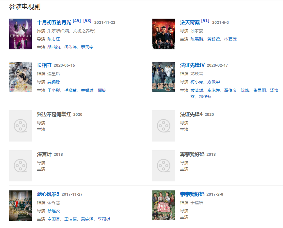 代表作品:大太監(jiān)、宮心計、射雕英雄傳、大俠霍元甲、溏心風暴之家好月圓