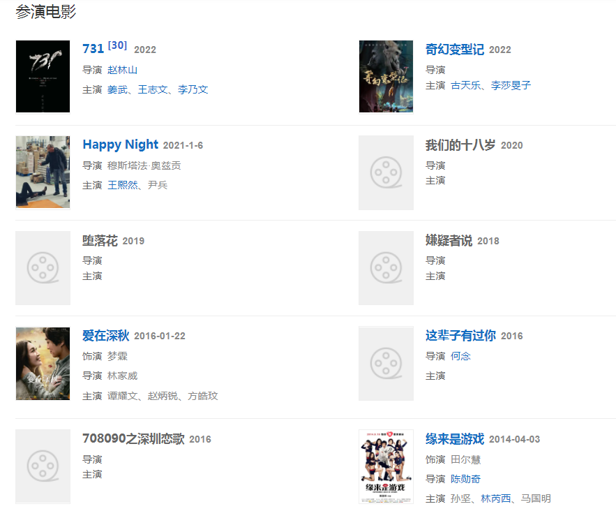 2016年主演的愛情電影《愛在深秋》上映;加盟何念導演的電影《這輩子有過你》 。