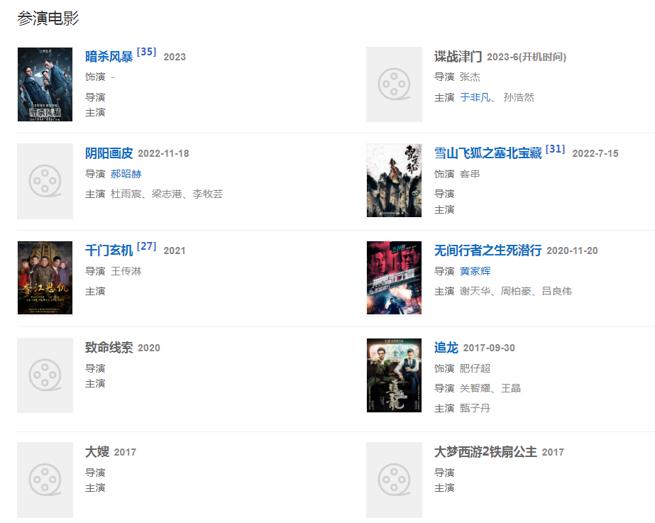 2017年9月30日,參演的電影《追龍》上映,片中飾演肥仔超。