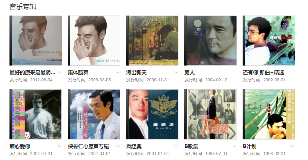 截至2020年,鐘鎮(zhèn)濤出版的專輯超過40張,領銜主演的電影超過80部。